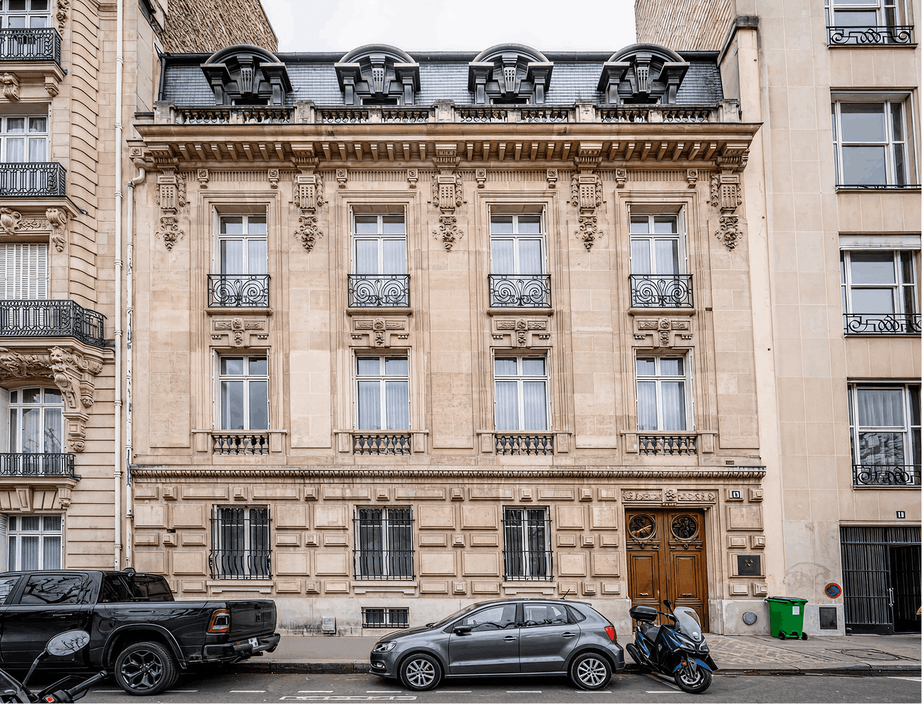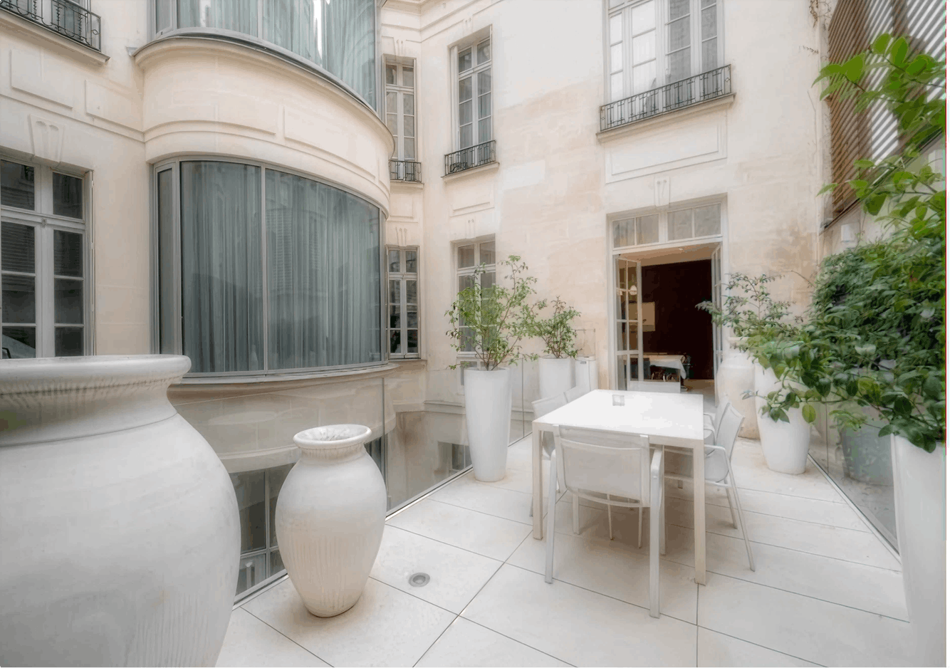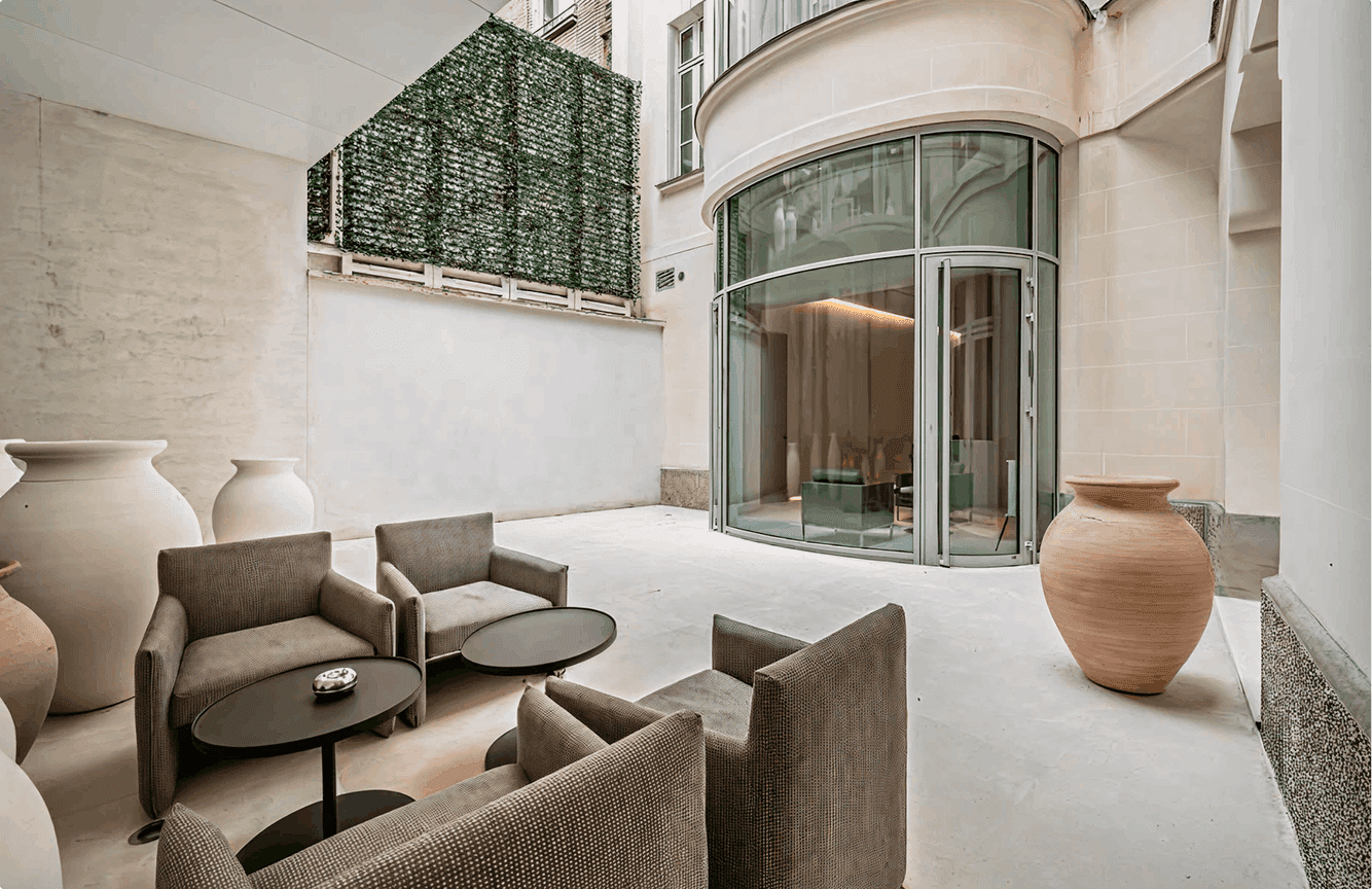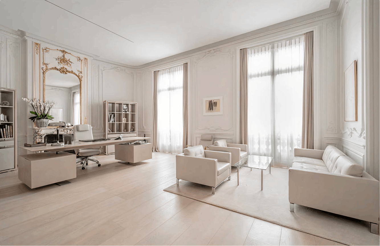À proximité immédiate des Invalides, cet hôtel particulier de 1902 référencé au patrimoine des bâtiments de France déploie 849 m² habitables sur quatre niveaux, complétés d'un sous-sol aménagé et de trois espaces extérieurs totalisant plus de 90 m². Entièrement repensé en 2017 par l'architecte Christophe Pillet, il conjugue l'élégance du bâti haussmannien avec des intérieurs résolument contemporains — pour un résultat rare, à la hauteur de son adresse.